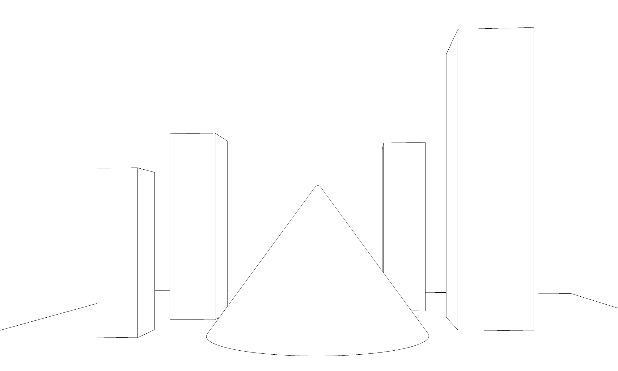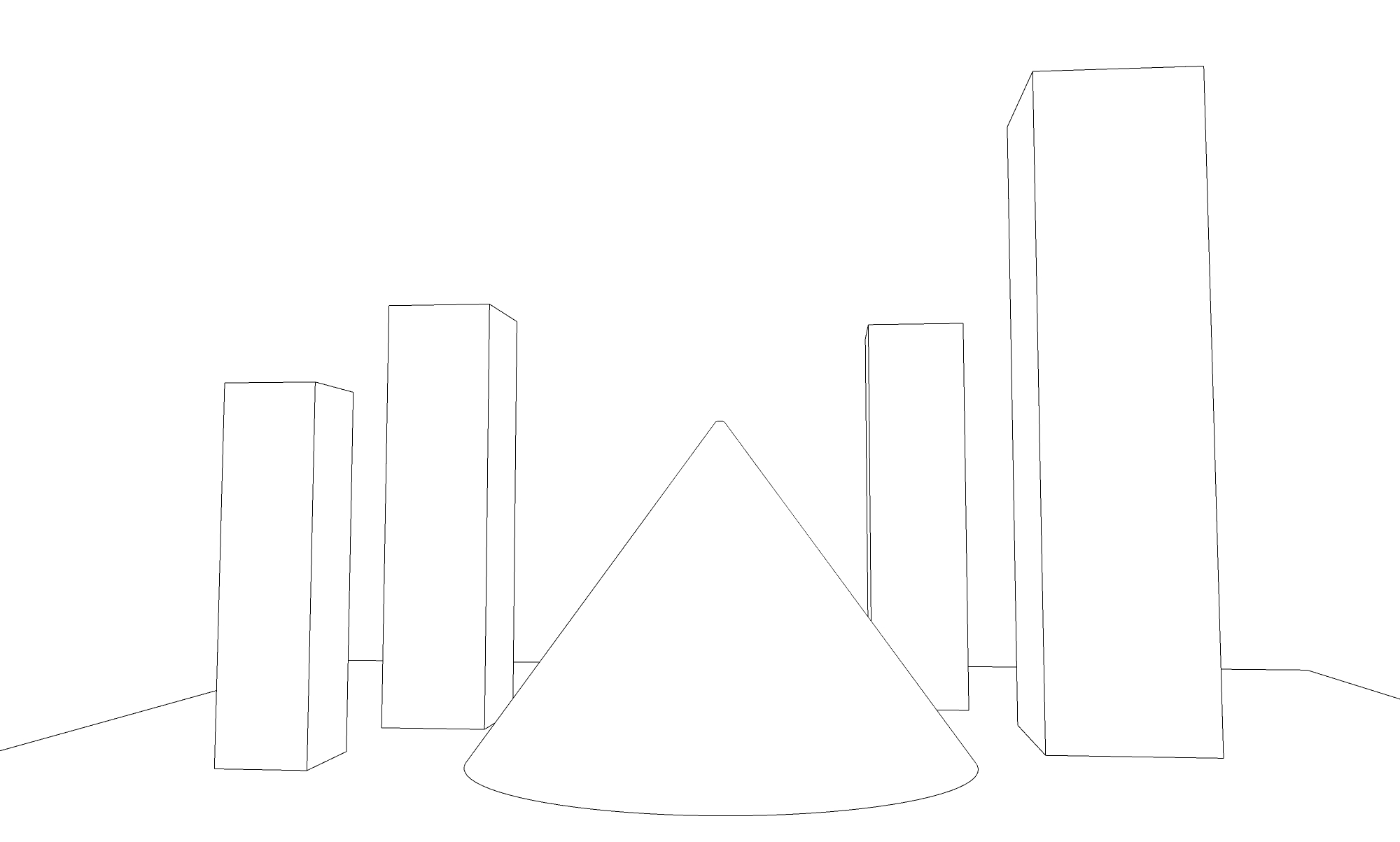 이게 왜 중요한가. 금방 이야기한 것처럼 스케치업의 기본화각은 35도로 설정되어 있다. 그리고 화각을 바꿔도 렌즈의 외곡은 존재한다. 그러면 이미지를 뽑을 때 우리가 보는 눈(카메라의 위치)에 따라서 선이 틀어지거나 기울어진다.