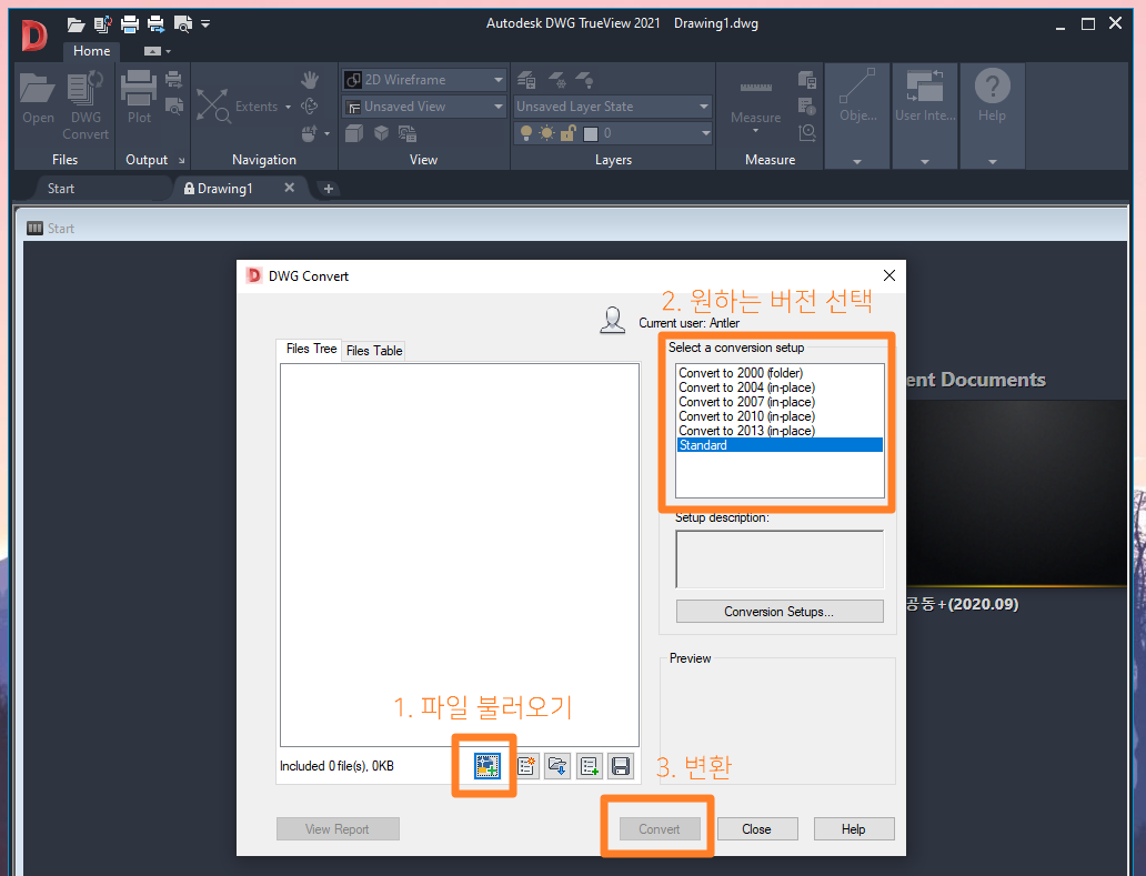 그다음 DWG Convert 버튼을 눌러서 창을 열어줍니다.