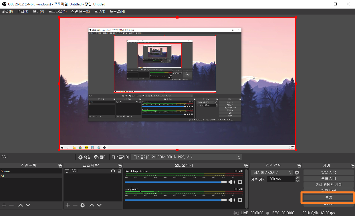 이제 우측 하단의 설정 버튼을 누르고 기본적인 설정을 해주겠습니다.