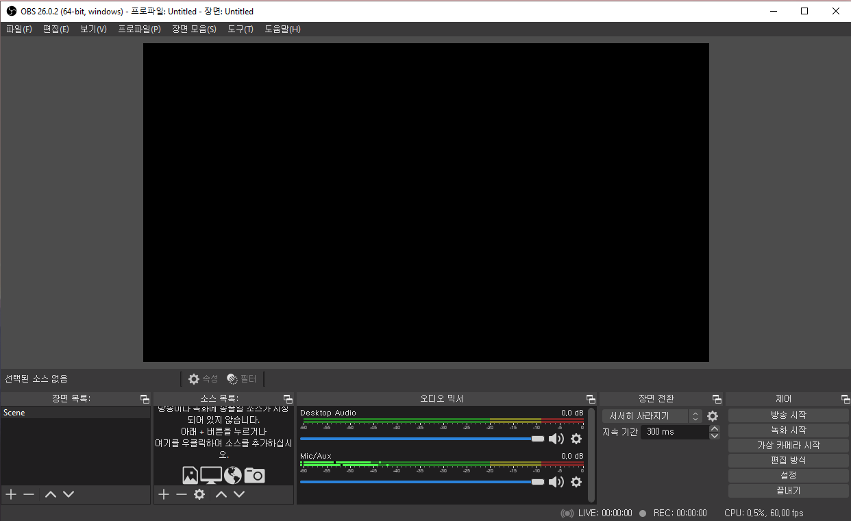 OBS Studio는 Open Broadcaster Software로 화면녹화 및 스트리밍 기능을 가진 오픈소스 프로그램입니다.