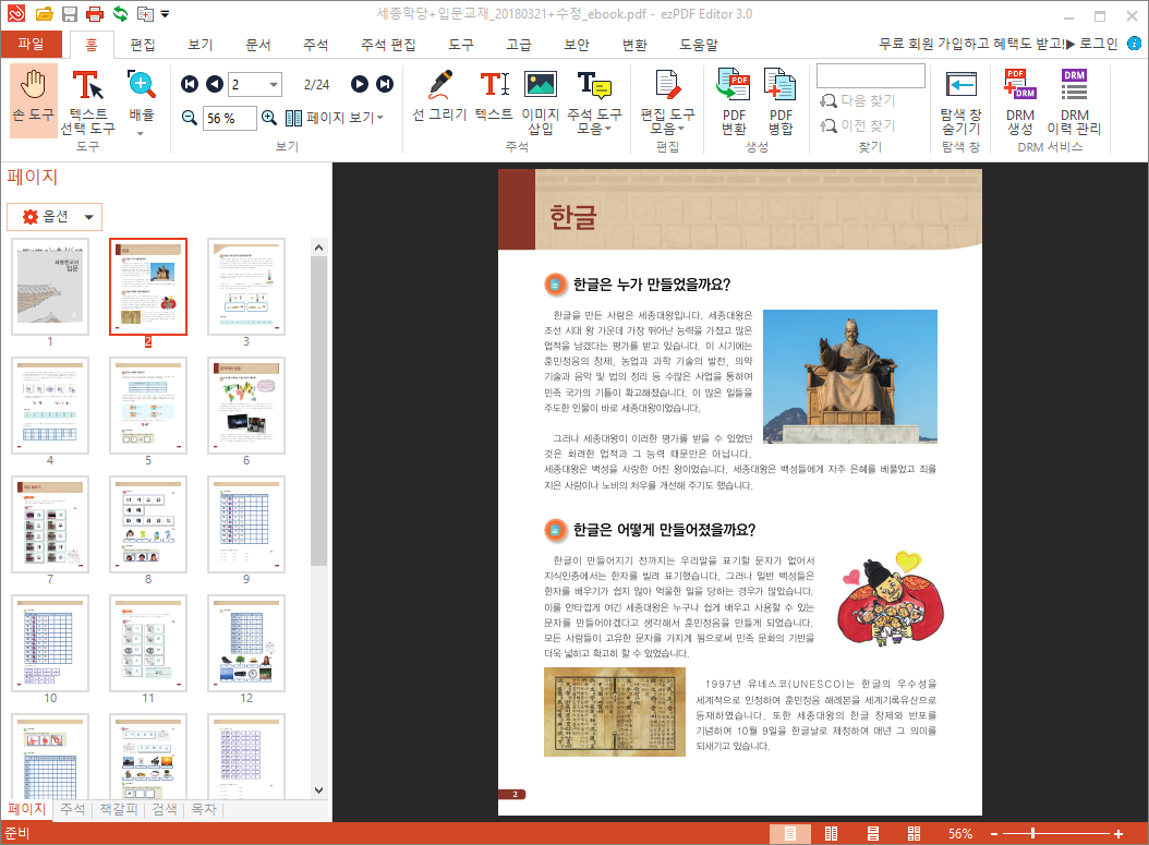 보통의 뷰어 프로그램의 경우에는 간단하게 볼 수 있는 기능만을 제공하는데 ezPDF Editor의 경우에는 다양한 편집 기능과 편의 기능이 있어서 더 다양한 상황에서 활용할 수 있습니다.